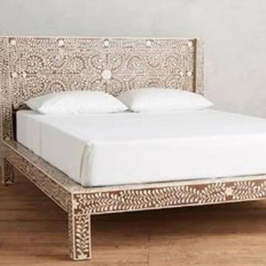 Bone Inlay Bed Floral Pattern Handcrafted Vintage Look with Headboard Bedroom DecorRegular price From $4,799.00 USDRegular priceUnit price / per