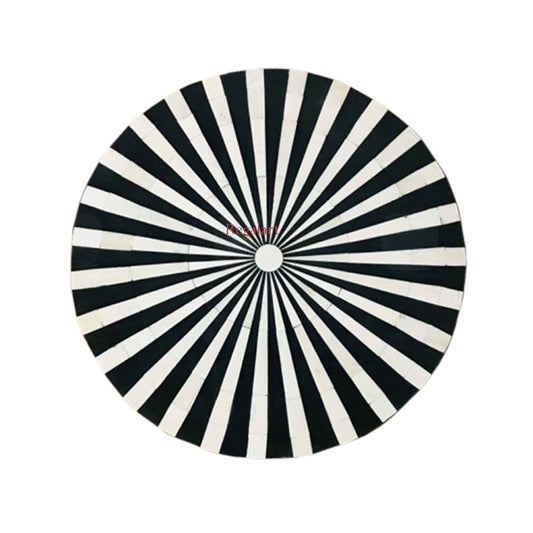 Bone Inlay Side Table & End Table, Black Round Bone Inlay Stool with Electric Pattern - Unique Home Decor Furniture