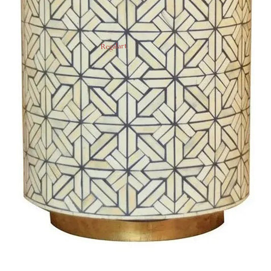 Callum Bone Inlay Side End Table | Elegant Nightstand for Bedroom and Living Room Décor