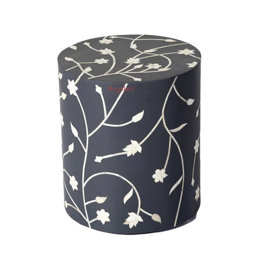 Bone Inlay Floral Pattern Side Tables, End Stools for Chic Home Decor