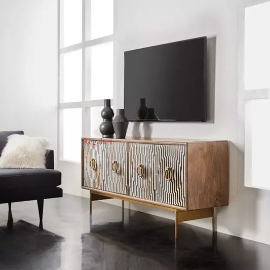 Bone Inlay Media Cabinet | Bone Inlay Entertainment Unit | Bone Inlay TV Unit Furniture