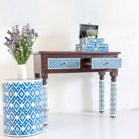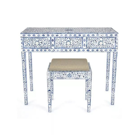 Blue Bone Inlay Console Table With Stool Decorative Table Bone Inlay Writing Desk