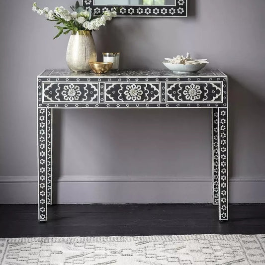 Handmade Bone Inlay Sideboard Table - Black Colour | Living Room Furniture | Bone Inlay Furniture