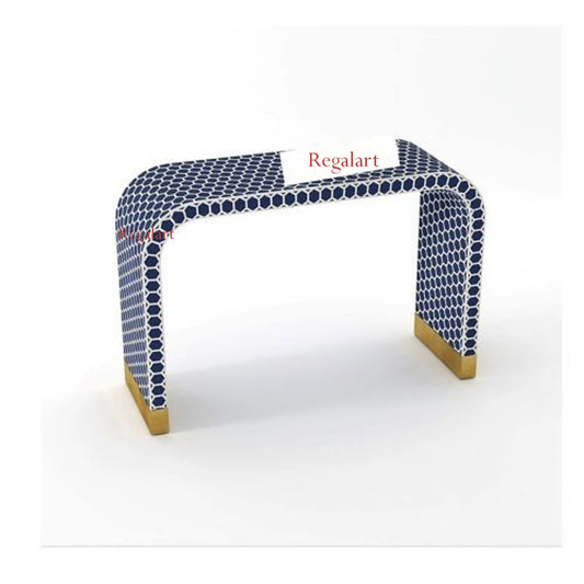 Handmade Bone Inlay Honeycomb Pattern Console Table – Luxury Craftsmanship for Timeless Decor