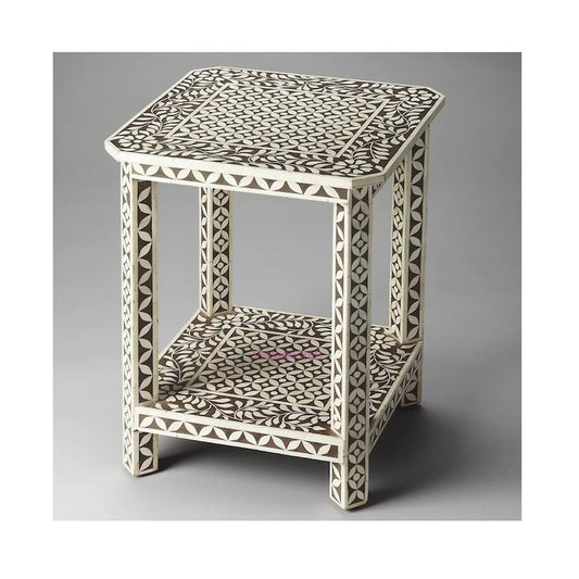 Bone Inlay Floral Pattern Side Tables, End Stools for Chic Home Decor