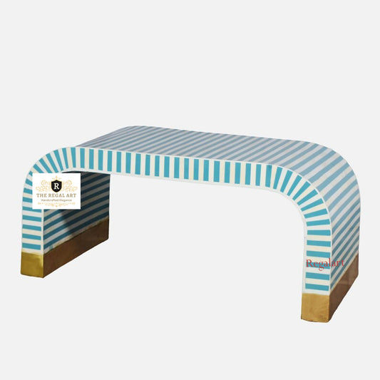 Handcrafted Bone Inlay Coffee Table with U-Shape Waterfall Design