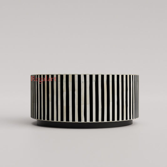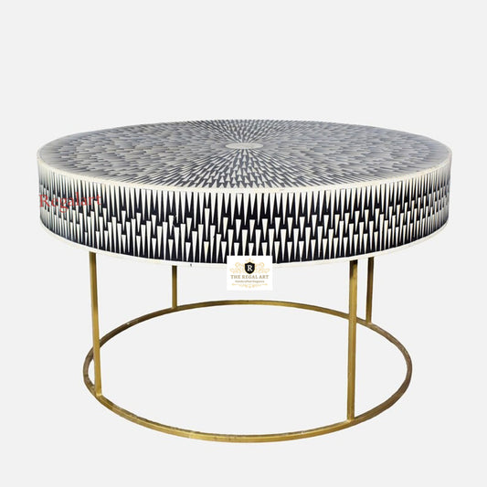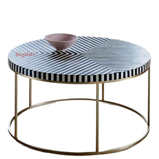 Handmade Bone Inlay Striped Pattern Round coffee Table Luxury home decor , Bone Inlay Furniture