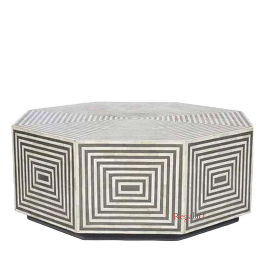 Grey Hexagon Bone Inlay Coffee Table | Handmade Bone Inlay Center Table | Unique Bone Inlay Furniture for Home Décor