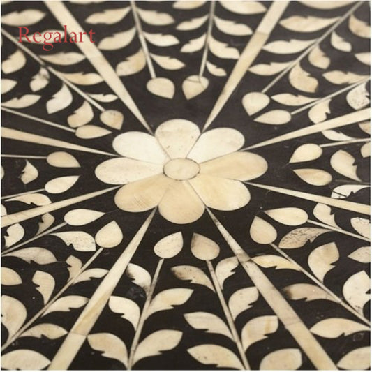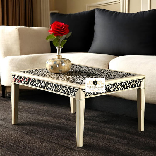 Handmade Bone Inlay Coffee Table - Floral Design Center Table | Elegant Bone Inlay Furniture