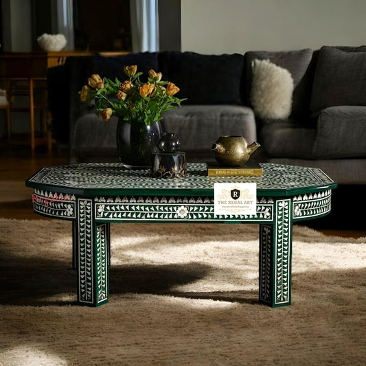 Handmade Bone Inlay Geometric Coffee Table | Artisan Crafted Bone Inlay Center Table | Luxury Bone Inlay Furniture