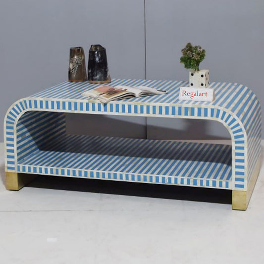 Handmade Bone Inlay Coffee Table, Camel Bone Inlay Table | Strip Pattern Bone Inlay Center Table, Bone Inlay Furniture