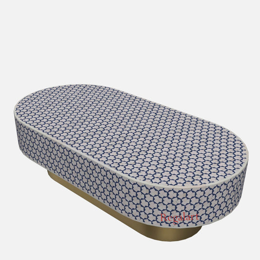 Targua Bone Inlay Coffee Table in Indigo Finish – Oval Shape