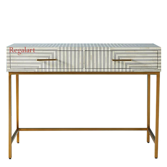 Handmade Bone Inlay Console Table in Grey – Elegant Home Décor Furniture