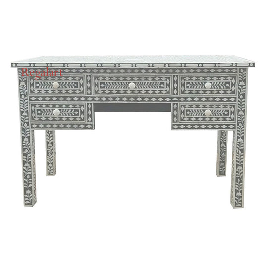 Handmade bone desk tables are stunning pieces featuring intricate bone inlay patterns. These unique desks showcase exceptional craftsmanship and add a touch of elegance to any workspace. Blending artistry with functionality, bone desk tables are timeless and sophisticated additions to any home or office.