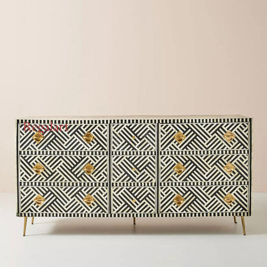 Bone Inlay Chest of Drawers – Handmade Wooden Dresser | Luxury Storage Cabinet
