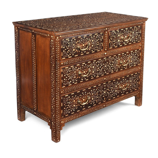 Handmade Bone Inlay Chest with 4 Drawers - Moroccan Pattern Dresser