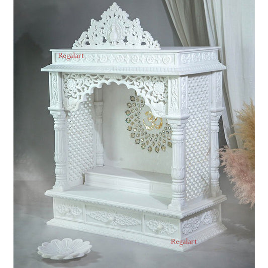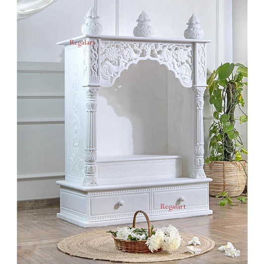 Mayur White Marble Temple for Home | Handcrafted Pooja Room Mandir | Customizable God Shrine for Home & Office | Elegant Spiritual Décor