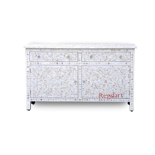 Mother of Pearl Inlay Buffet Sideboard - Floral Design Cabinet