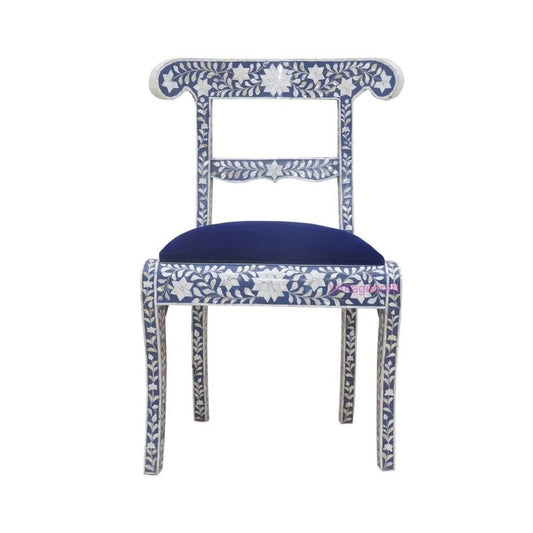 The handmade mother of pearl inlay chair is a stunning piece of furniture. Its frame is adorned with intricate mother of pearl inlays, giving it a unique and elegant look. This well-crafted chair adds a touch of luxury to any room, combining comfort with exquisite design.