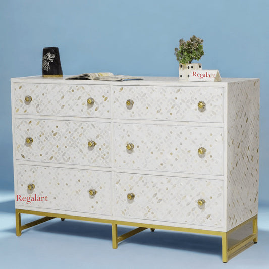 Mother of Pearl Inlay 6-Drawer Chest - Eye Cut Design Dresser | Stylish Storage Unit