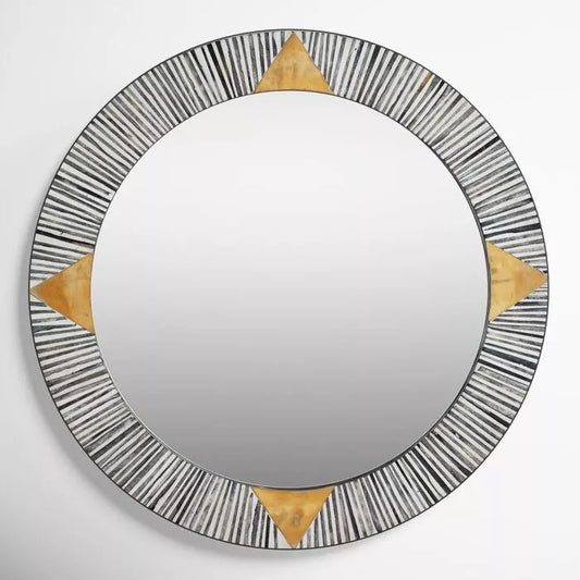 Round Bone Inlay Striped Wall Mirror for Entryway