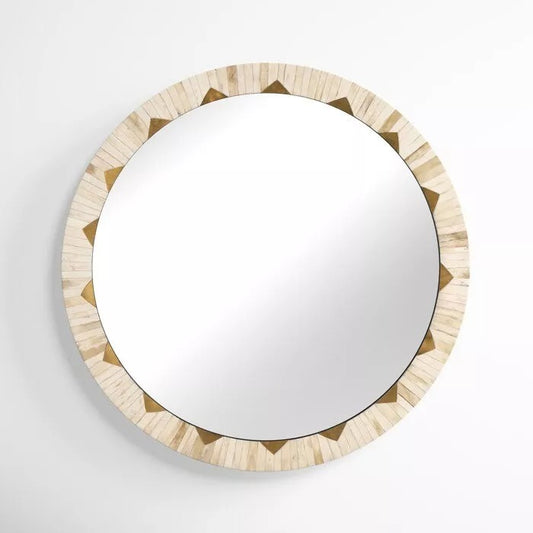 Handmade Bone Inlay Round Wall Mirror: Boho Decor
