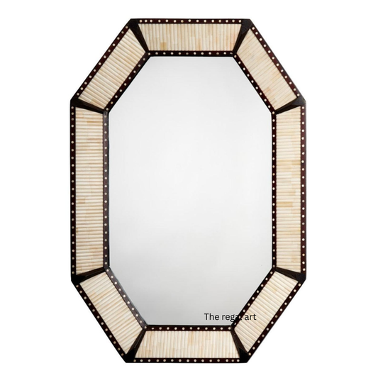 Handmade Bone Inlay Octagonal Wall Mirror: Boho Decor