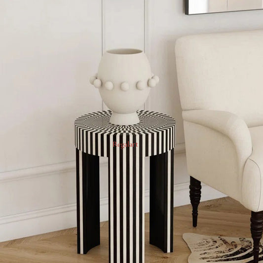 Handmade Bone Inlay Striped Pattern Round coffee Table Luxury home decor , Bone Inlay Furniture