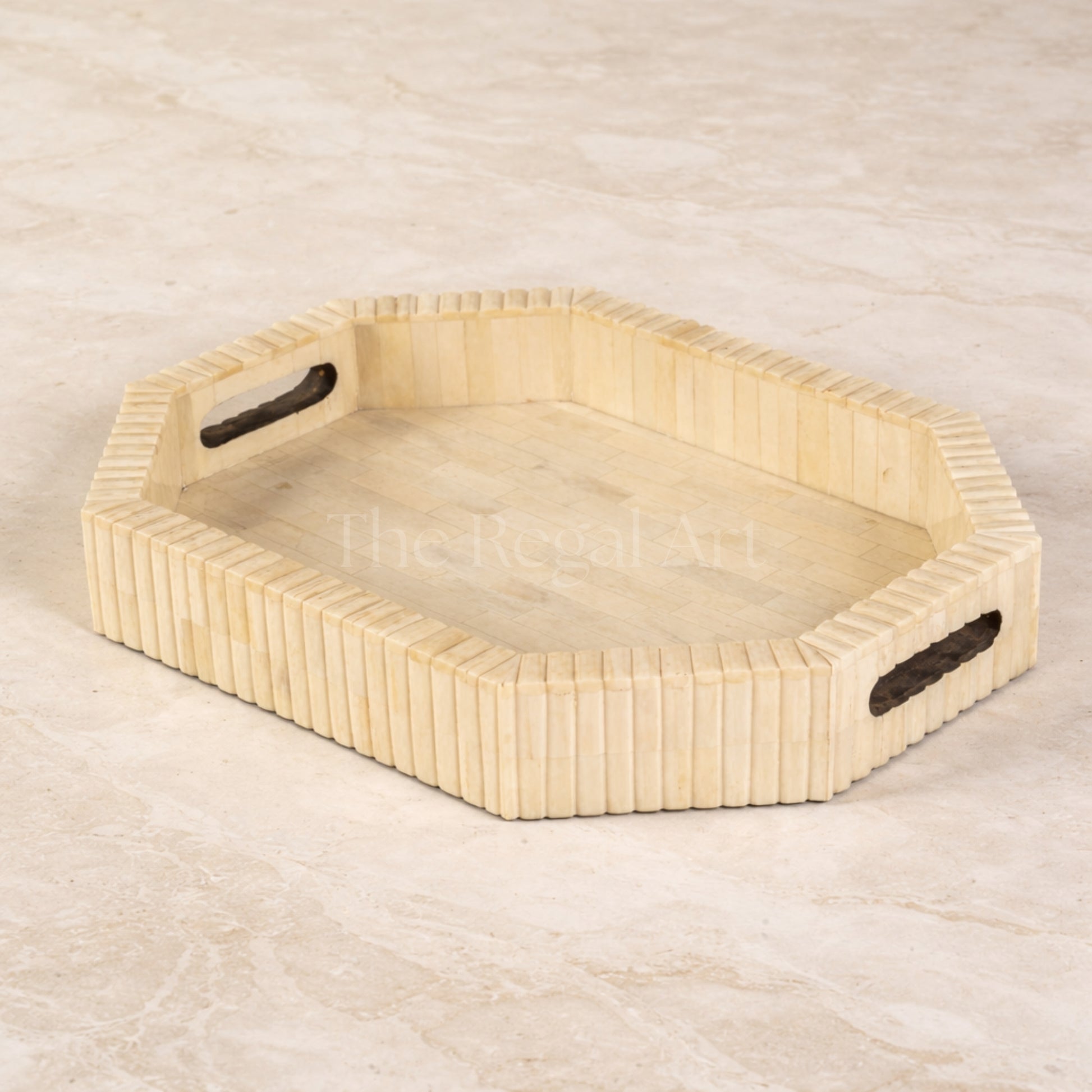 Featuring both a beautiful and long-lasting design, this tray is strong and makes a great addition for living rooms when it comes to arranging coffee tables and consoles, as well as other decorative arrangements. As a functional decorative item, this bone carved tray is perfect for use