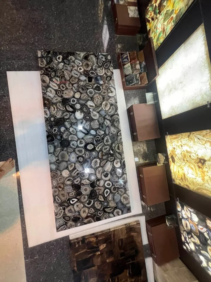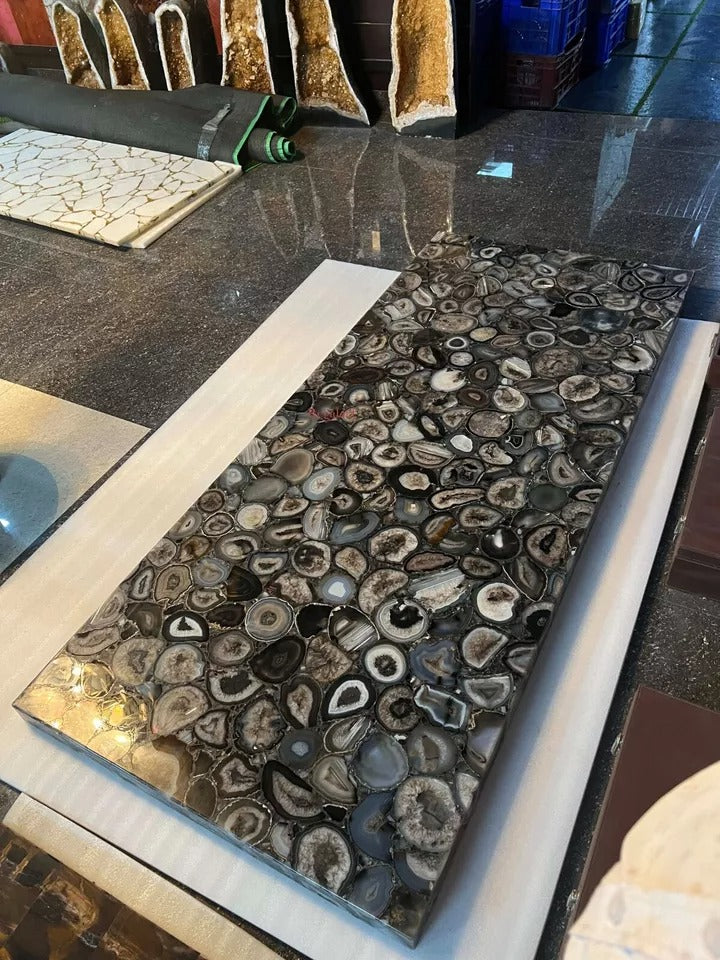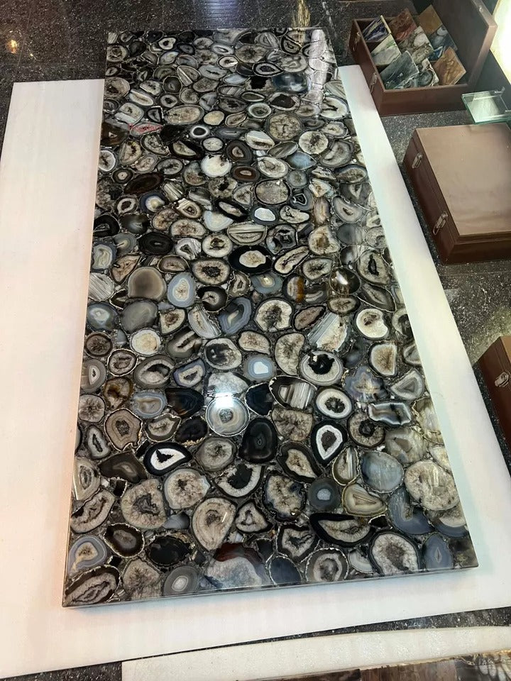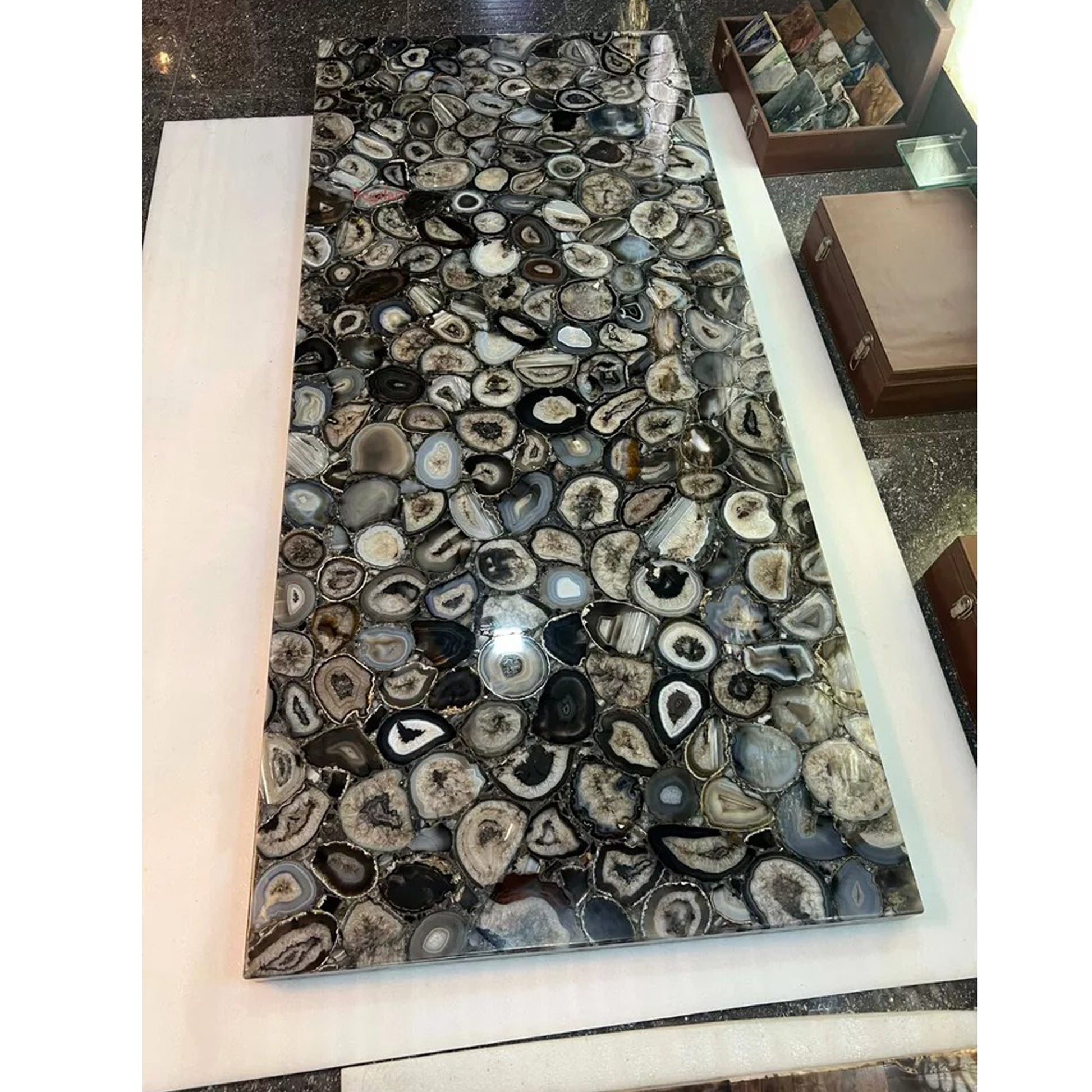 Agate Black Brazil Dining & Kitchen Table, Agate Table Top Slab Decor