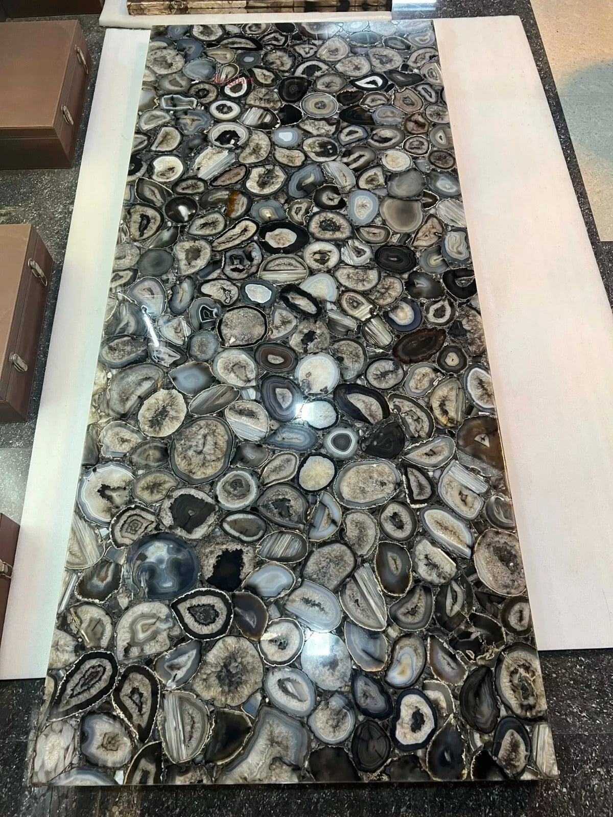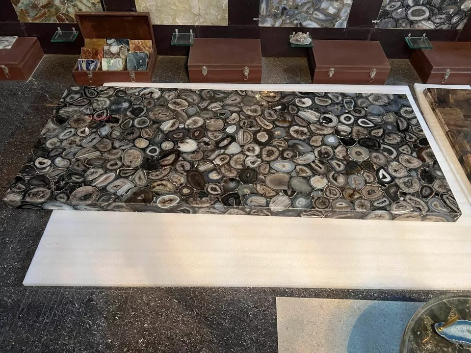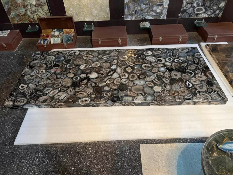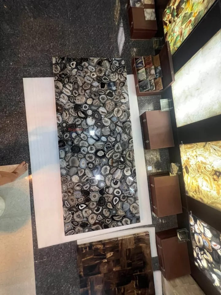 Agate Black Brazil Dining & Kitchen Table, Agate Table Top Slab Decor