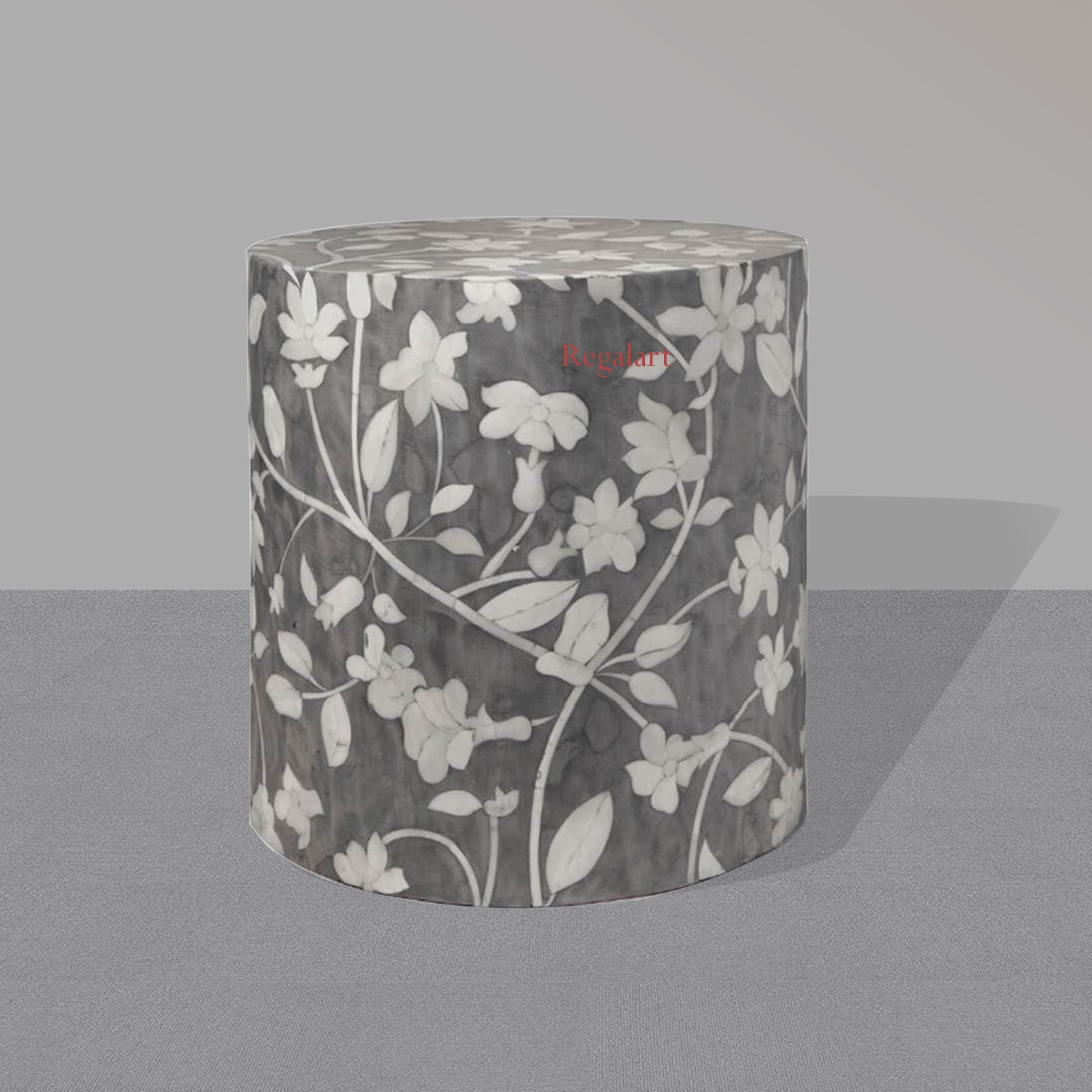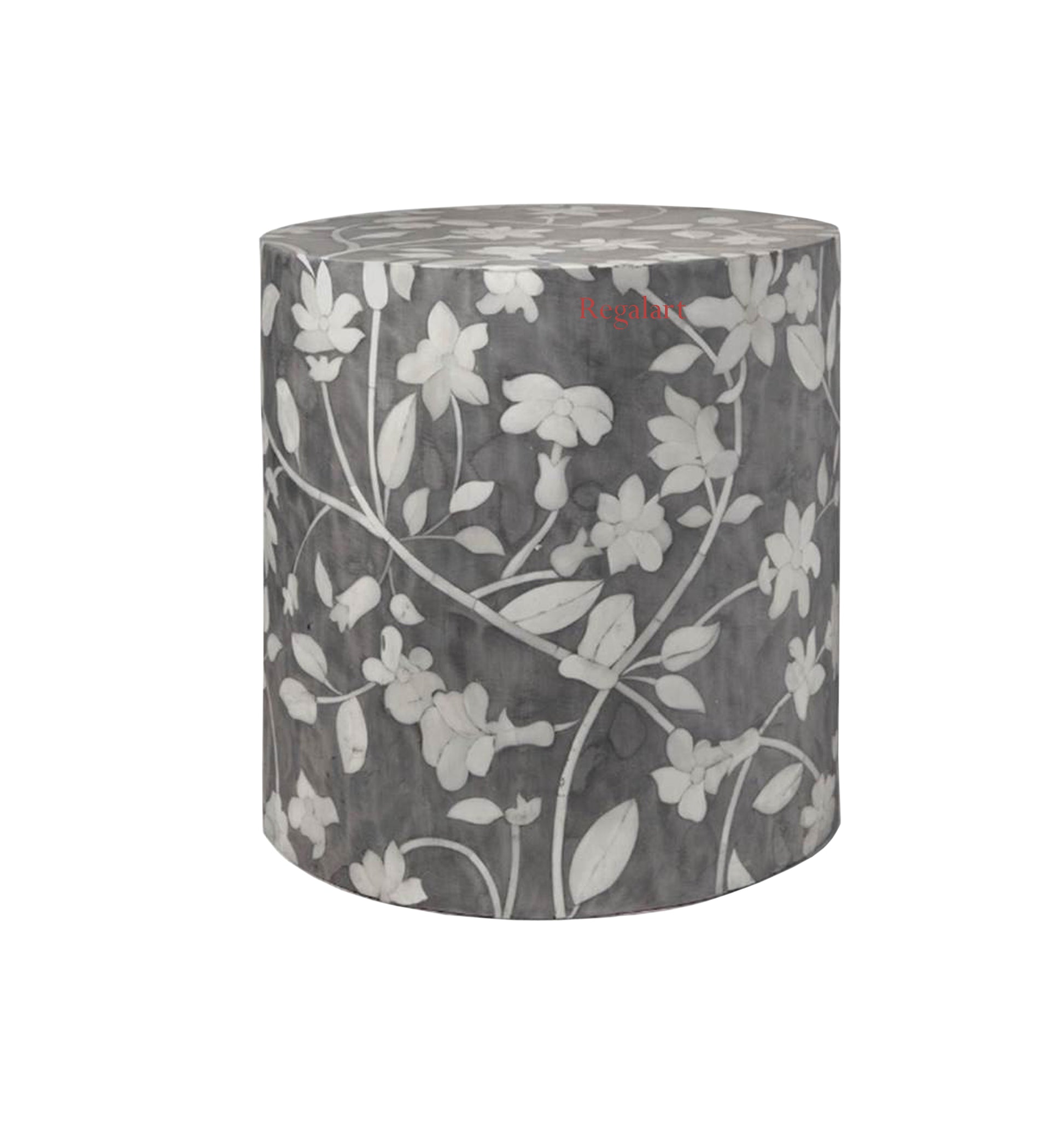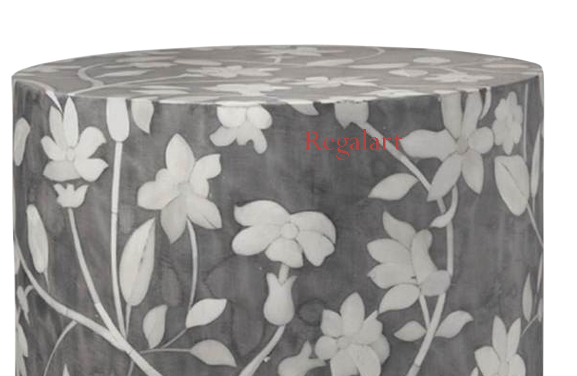 Handmade Bone Inlay Floral Design Round End TableDecorative Design Side Table , Bone Inlay Stool Home Decor