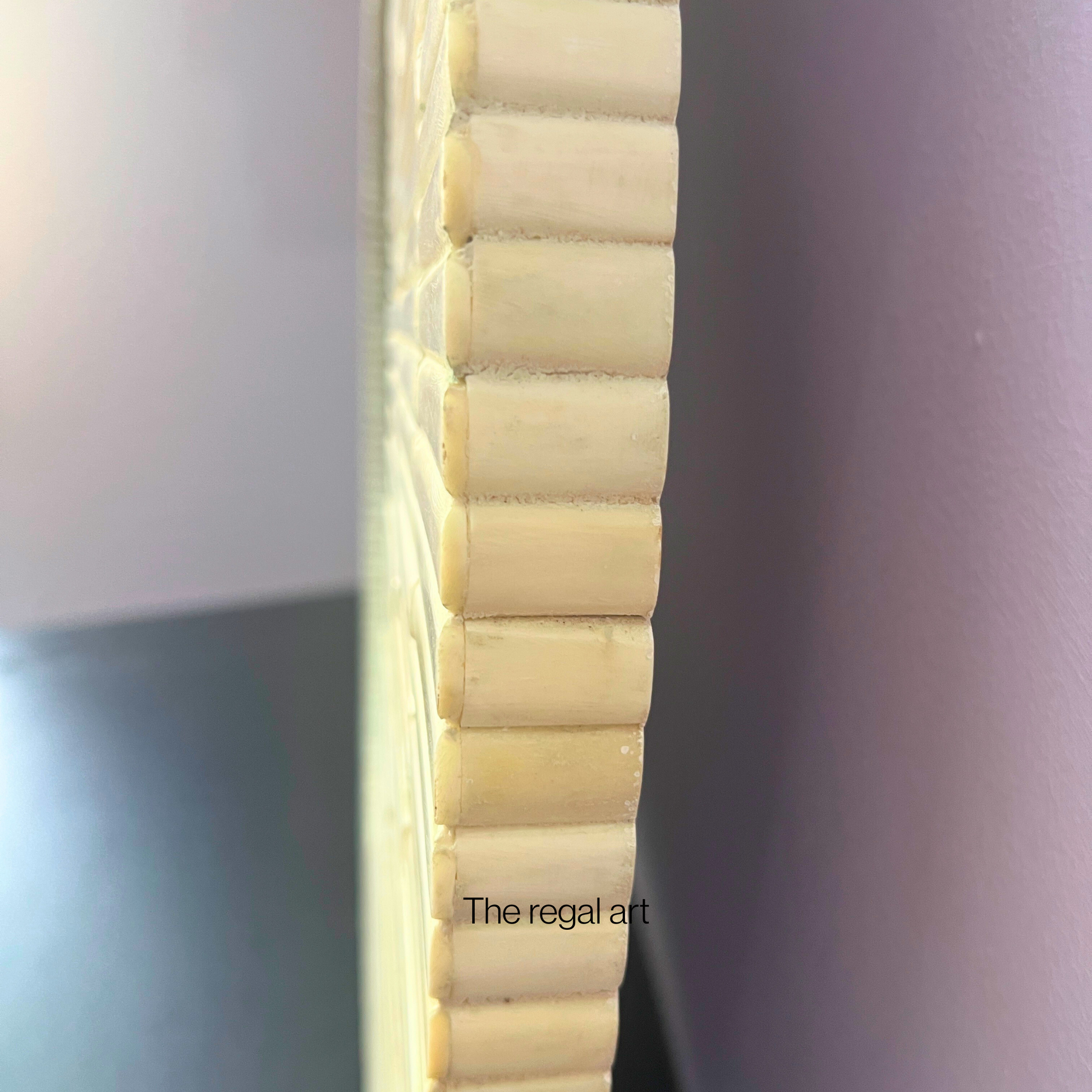 Perfect for your bathroom, bedroom, entryway, or dressing area, this mirror adds both function and luxury. The neutral white tone blends seamlessly with modern, boho, and traditional interiors, while the bone inlay adds handcrafted charm and cultural richness.