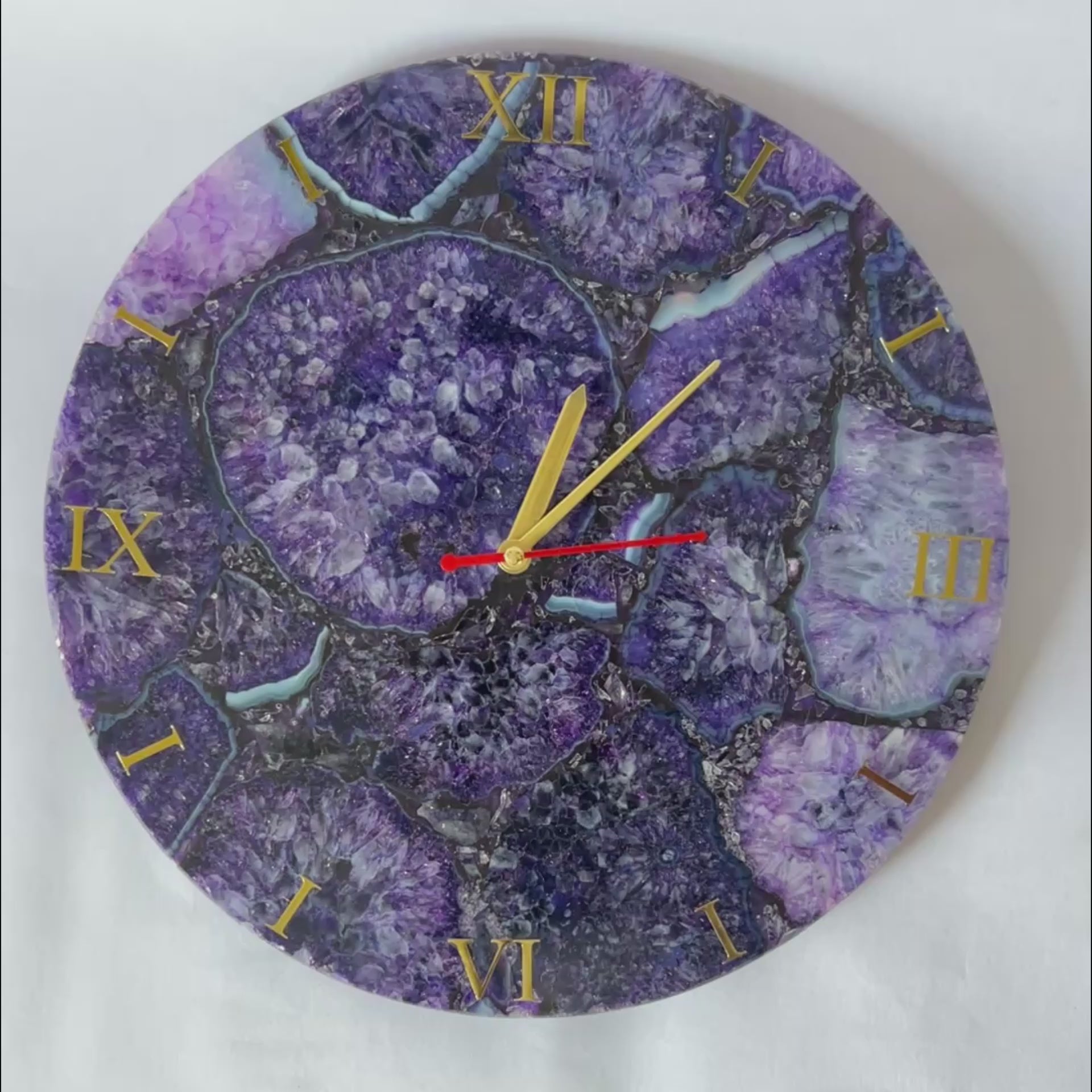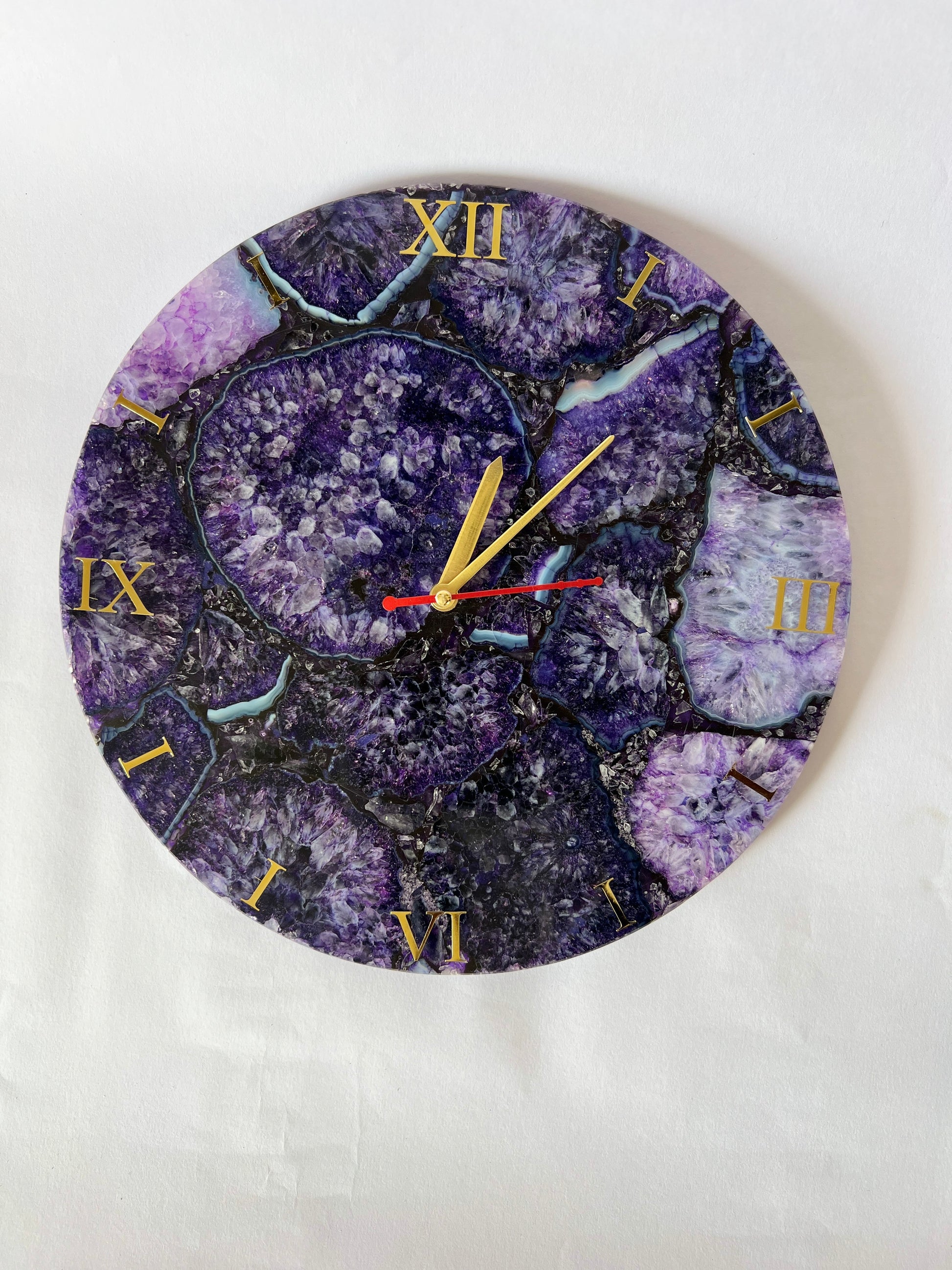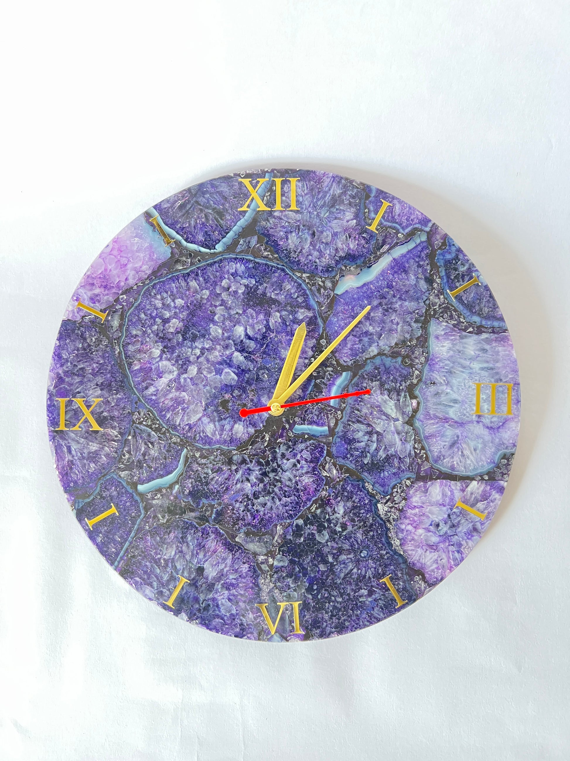 Purple Agate Gemstone Wall Clock: Handmade Home Decor